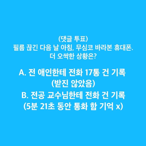 [스크랩] [기타]필름 끊긴 다음날 “전남친한테 전화 17통 건 기록(안받음) vs 전공 교수님이랑 5분21초 통화한 기록(기억x)”