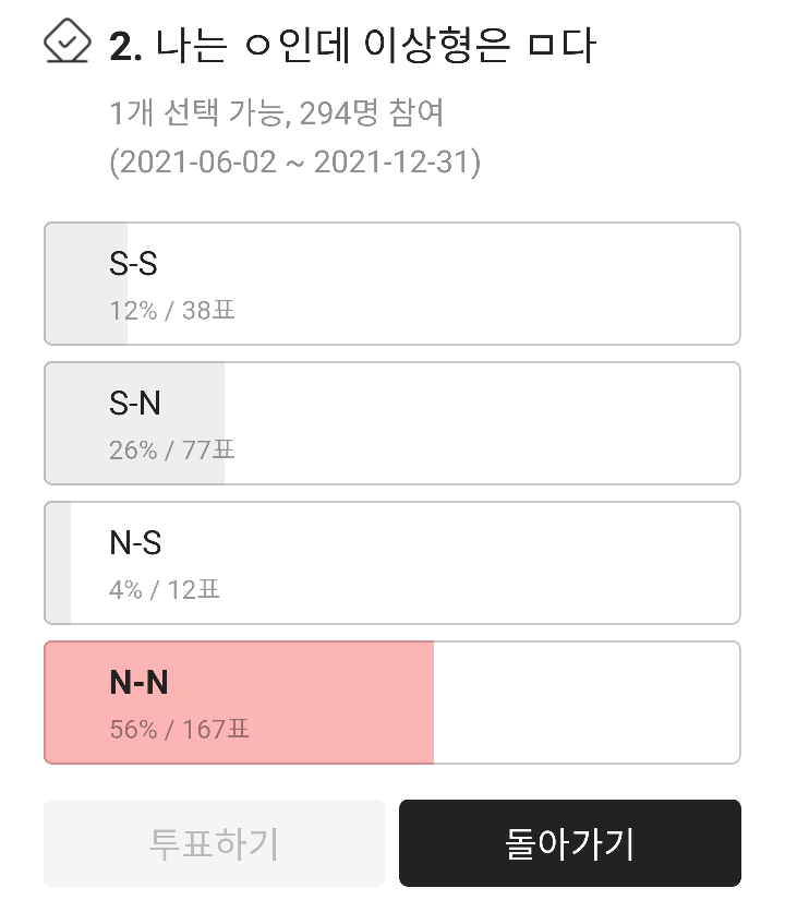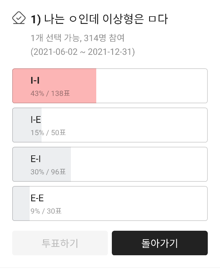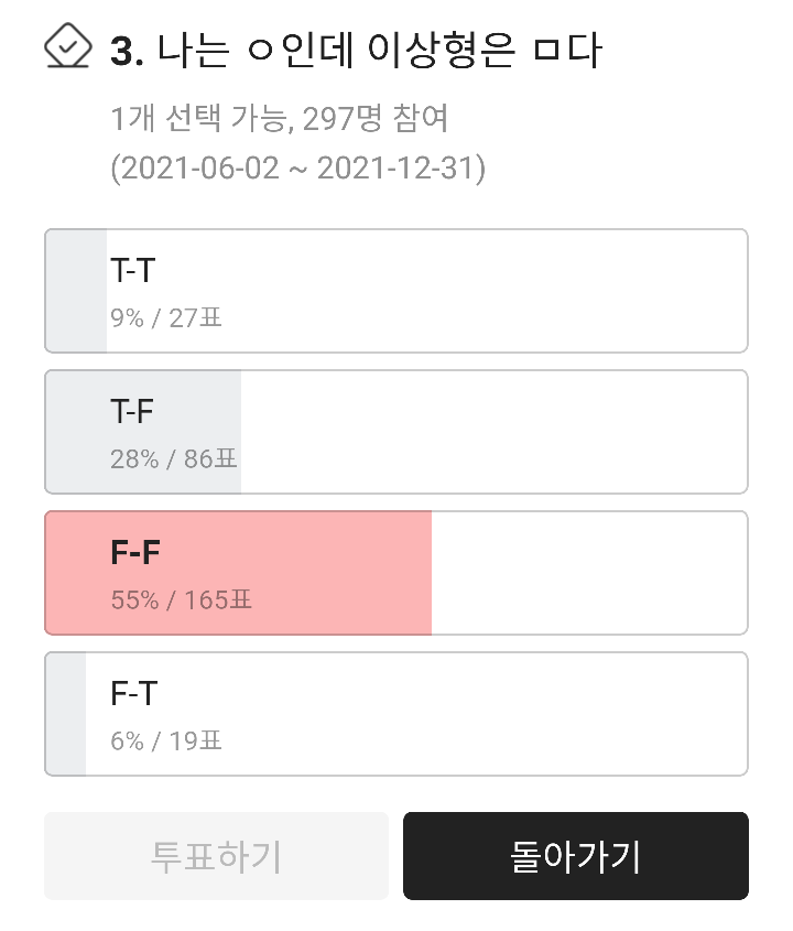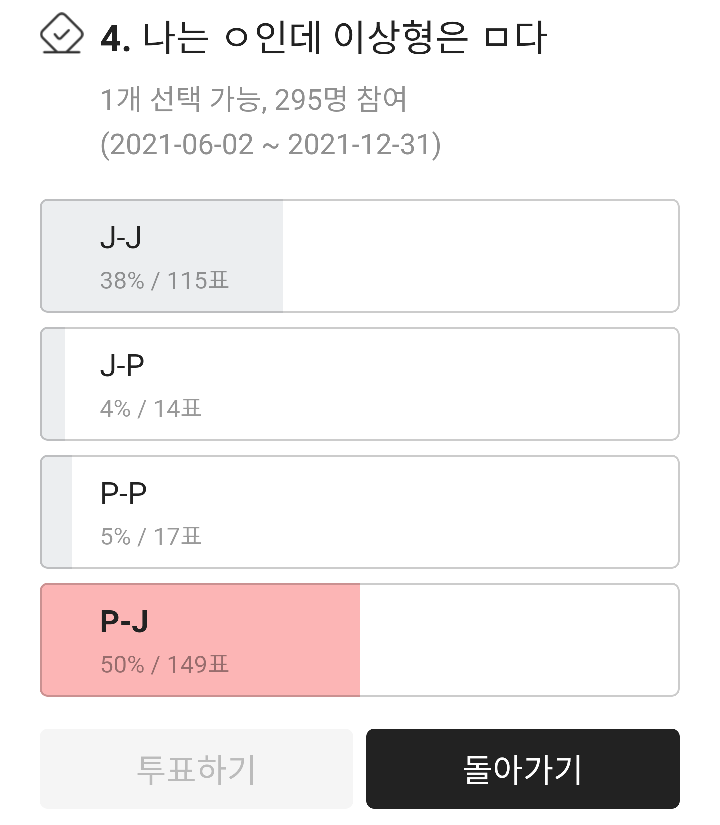 MBTI 이상형 테스트(https://mbtilovetest.netlify.app/index.html)를 진행하고 투표를 해보았어요~