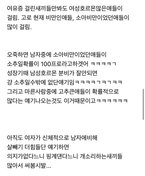 살찌면 남성호르몬에 문제생김ㅇㅇ
