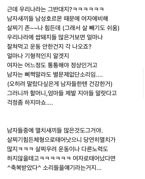 남자들 살찐거랑 여자들 살찐거