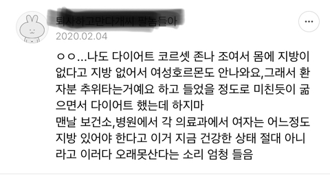 +여자들 마른체형까지 살빼면 생리 끊겼다고