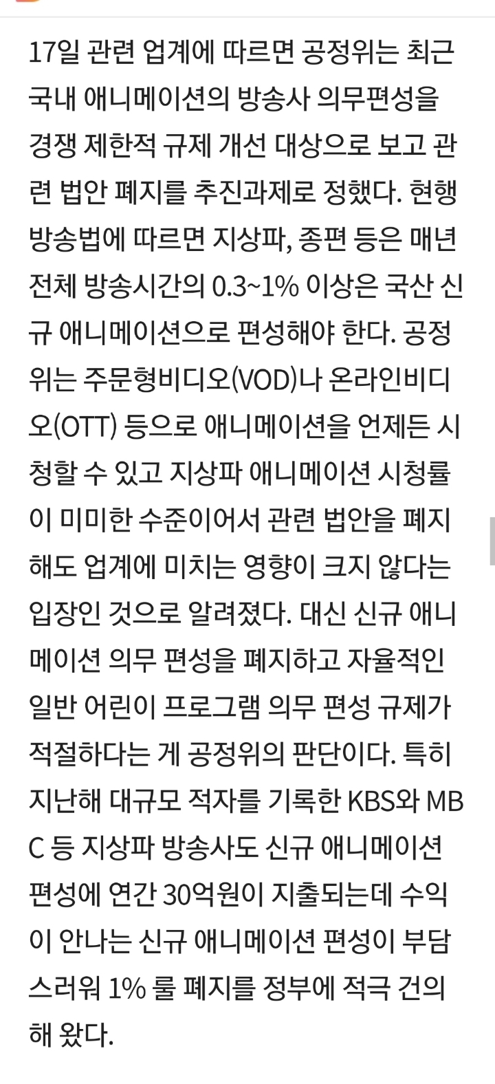 공정위(방통위&지상파) : 어차피 요즘 다른 미디어로 애니 많이 보고, 지상파 부담은 큰데 시청률은 조또 안나옴;;;;;