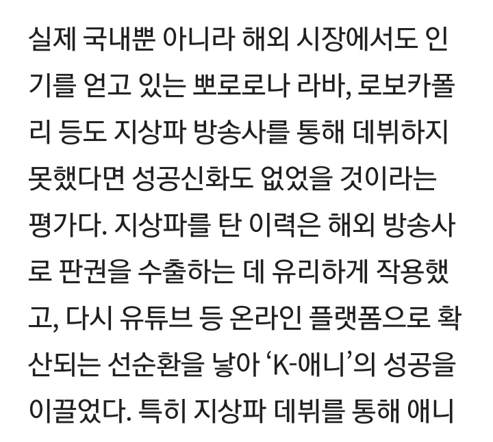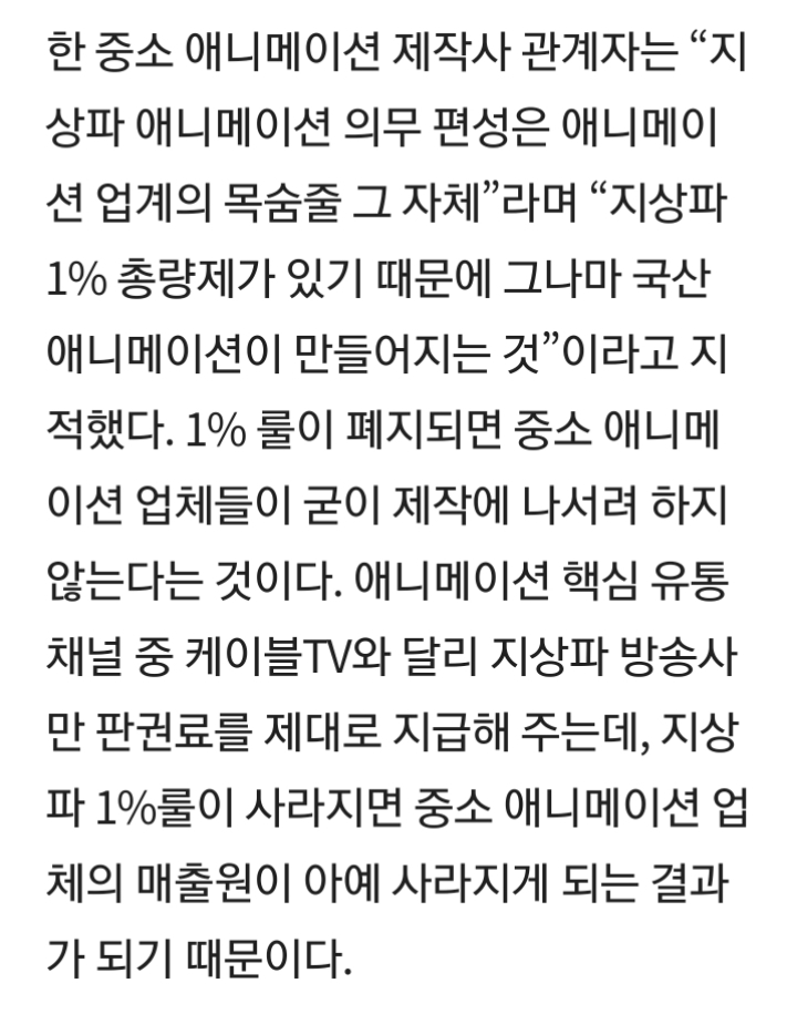 애니업계 : 아직 2/3 이상은 TV로 애니를 보거든요??! 그리고 지상파에서 안 받아주면 이제 누가 애니를 TV에서 틀어주냐고요...! 뽀로로도 TV방송이력 없었으면 해외 수출도 못 했을텐데 해외 사업길까지 막으려고 하냐!!!!