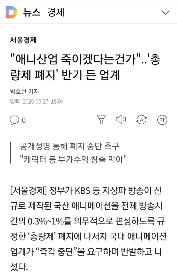 그런데 애니메이션 총량제??? 저건 뭐임???