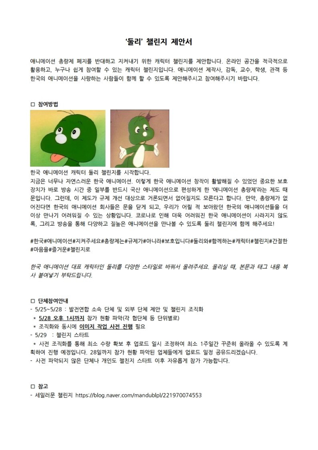 👆🏻👆🏻이러한 이슈를 알리기 위해 둘리챌린지를 시작하게 된 것!!!!