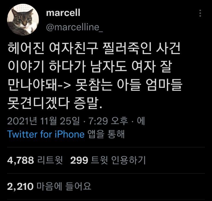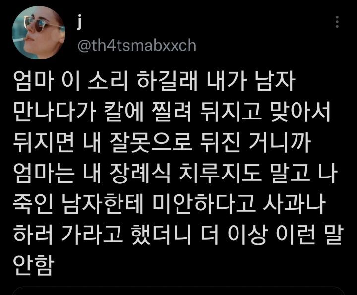 작성자내기분은높아 작성시간 21.11.30 왜 맞아죽는 게 여자 잘못이 되는 거야? 무슨 사고회로야 ;;;;;;;;