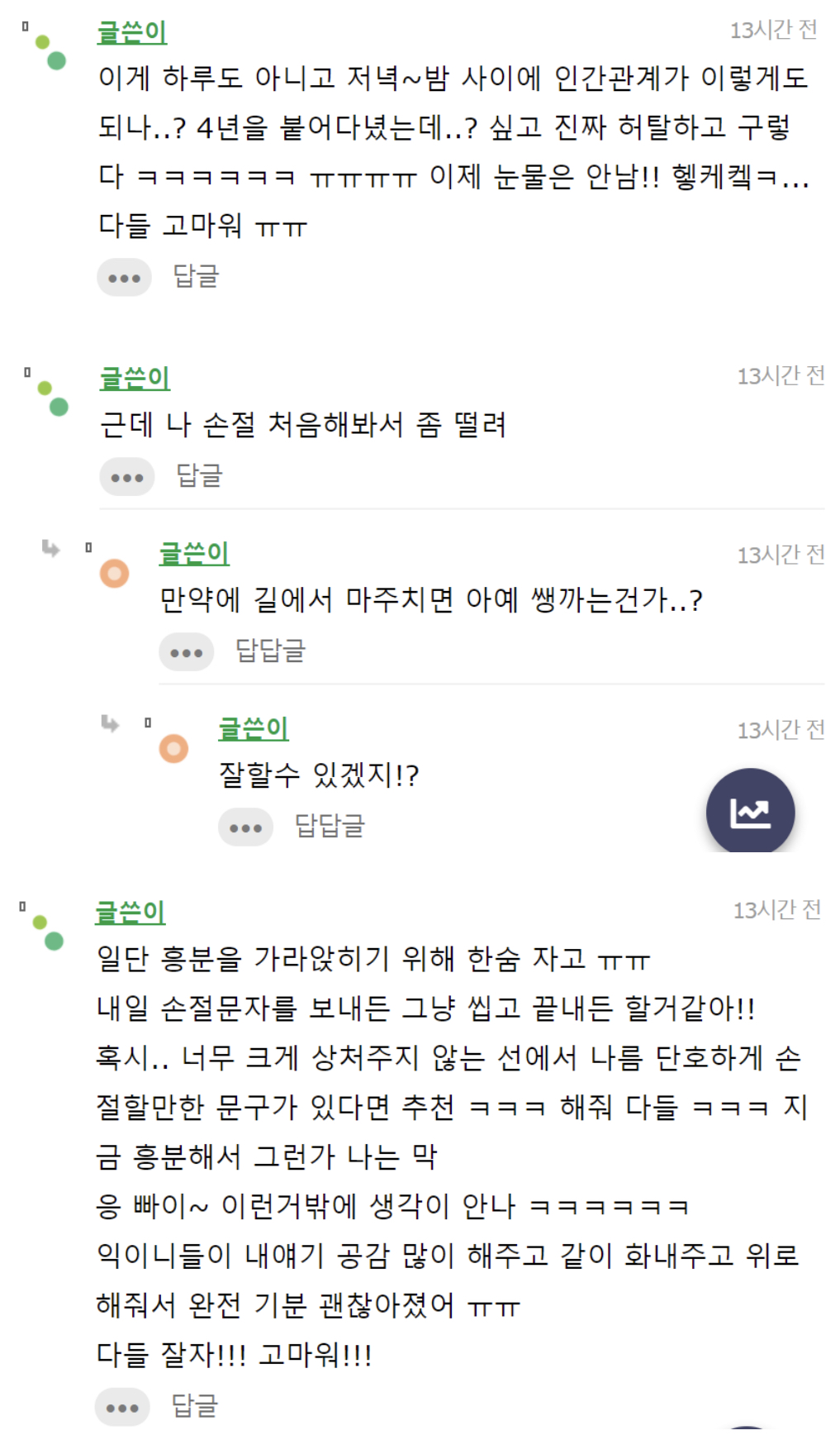 작성자멍멍하면 야옹 작성시간 21.11.30 손절 잘했다 혼자 급발진해서 화내놓고 지 잘못은 하나도 없다는듯이