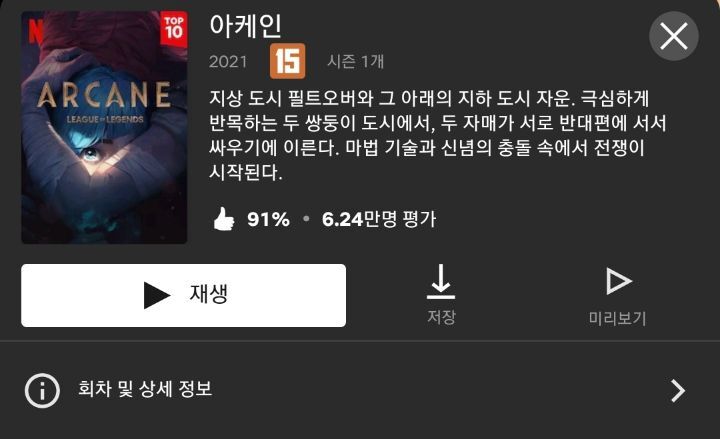 게임 리그오브레전드(롤) 세계관을 기반으로 한 9부작 애니메이션인데