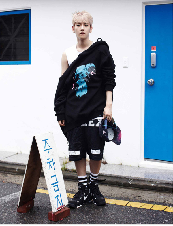 앨범과 동시에 특별한 콜라보레이션을 기획, 준비해 왔어요. ‘으르렁’을 스쿨, 스트릿 룩으로 표현한 만큼, 패션도 스트릿 레이블과 함께하면 재밌겠다는 생각이 들었거든요. 앨범 콘셉트에 맞게 개성 있는 국내 스트릿 브랜드 네 군데와 엑소의 첫 번째 앨범을 테마로 한 콜라보레이션 샵을 준비 했어요. 며칠 전 엑소 멤버들이 매장 준비 중에 방문해 신 나게 놀다 갔죠. 조만간 가로수길에서 재밌는 형태의 샵을 보실 수 있을 텐데, 매장 곳곳에 숨겨진 엑소 멤버들의 흔적에 아마 깜짝 놀라실 거예요. (웃음)