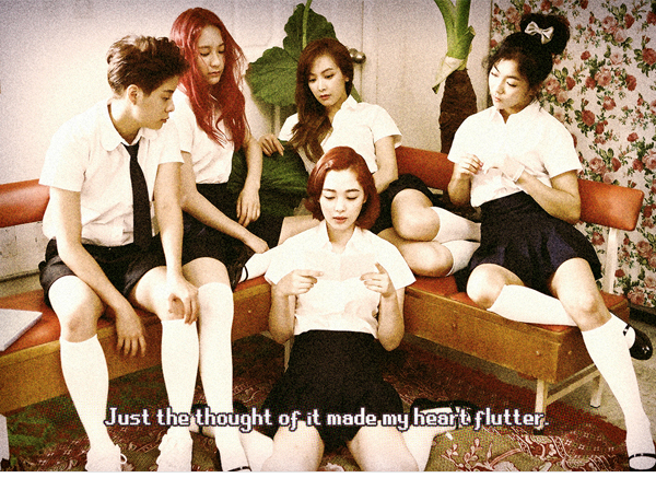 ⓒ 첫사랑의 풋풋함을 상징하기 위해 응용된 교복을 콘셉트로 한 에프엑스의 '첫 사랑니' 앨범 이미지