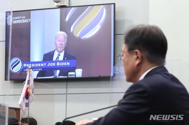 이번 민주주의 정상회의는 바이든 대통령 주재로 9일부터 이틀 간 진행된다. 문 대통령을 비롯해 영국·호주·일본·인도 등 총 112개국 정상이 참여한다. ▲권위주의 대항 ▲부패 척결 ▲인권 보호 3가지 의제를 논의한다.