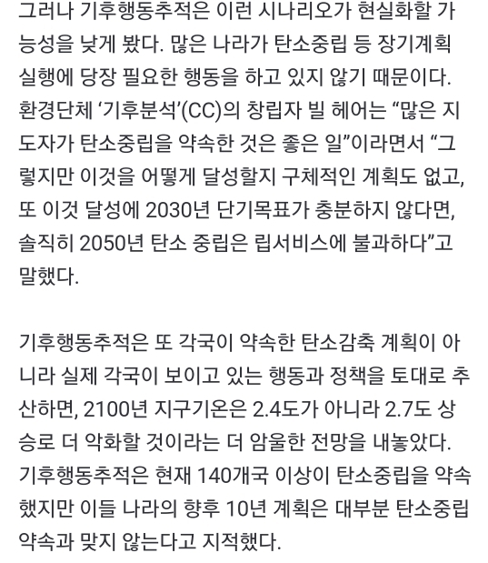 탄소중립 시나리오는 우리가 할 수 있는 최선이고, 당연히 이 약속은 지켜지기 힘듬 지켜지지도 않고있음 말뿐인 목표만 세우는중임 당장 눈앞의 경제발전, 기술발전, 작게는 유행따라 입어야하는 패션산업, 식탁에 올라가려고 탄소를 존나게 배출하면서 자라는 공장식 축산업 등등이 그 시나리오를 열심히 방해중임