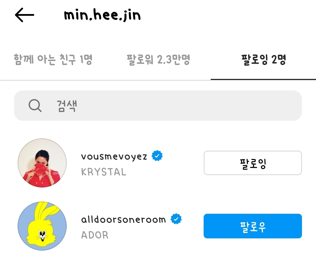 [흥미돋]엄청 끈끈한 사이인 듯한 크리스탈과 민희진 작성자베지 프링글스|작성시간21.12.10|조회수71,179 목록 댓글 13 글자크기 작게가 글자크기 크게가 출처 : 여성시대 베지 프링글스구 sm 아트디렉터>총괄이사 현 하이브 CBO 민희진에프엑스 핑크테이프를 만들어낸,,,크리스탈 인스타그램에 둘이 같이 있는 업로드 사진을 보다가 팔로우목록을 보는데...?크리스탈 팔로우목록(2명)민희진, 제시카민희진 팔로우목록(2명)크리스탈, 본인이 맡고 있는 회사둘이 엄청 끈끈한 사이인가봄 다음검색 현재 게시글 추가 기능 열기 북마크 공유하기 신고 센터로 신고 댓글 댓글 13 댓글쓰기 답글쓰기 댓글 리스트 해당 댓글은 작성자와 운영진만 볼 수 있습니다. 해당 댓글은 작성자와 운영진만 볼 수 있습니다. 해당 댓글은 작성자와 운영진만 볼 수 있습니다. 해당 댓글은 작성자와 운영진만 볼 수 있습니다. 답댓글 작성자베지 프링글스 작성자 본인 여부 작성자 | 작성시간 21.12.10 by가을바람이야 ㅎㅎ 댓글 전체보기