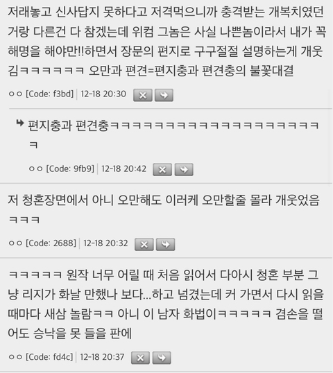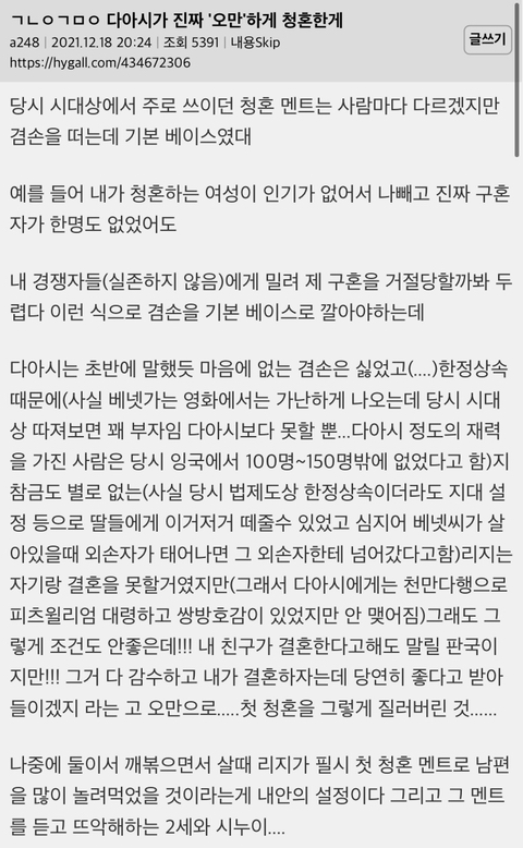 작성자작은 기적, 밍기적 작성시간 21.12.24 원작보면 청혼도 혼자 급발진해가지고 내가 당신 가족이 너무 천박하고 급이 안맞아서 참아왔는데~를 구구절절 설명하고 그럼에도 당신에 대한 애정을 참을 수 없었다 결혼 수락해달라 라고 직접적인 지 감정에 대한건 거의 한문장으로 일단락함 그런데 더 기가찬게 당연하 수락할 줄 아는 태도였음ㅋㅋㅋㅋㅋㅋ내가 엘리자베스여도...개빡침 ㅋㅋㅋㅋ 가족이 못난건 사실인데 시발럼아....청혼할때 그걸 왜 꺼내는데....