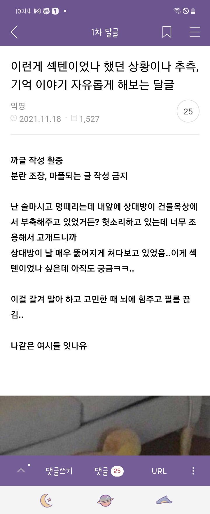 내가 놀라서 아.. 하니까 그분도 아.. 하는데 나도 놓고 그분도 놓으려고 하는것 같은거야 그럼 우산 떨어지니까 다시 잡았는데 그분도 걍 다시 잡음ㅋㅋㅋㅋㅋㅅㅂ 뭐고..? 하면서 봤는데 나 보면서 웃더라 몸은 가까이 있고 그분은 야하게 생겼고; 갑자기 주변 조용한게 느껴지면서 기분 요상해짐..