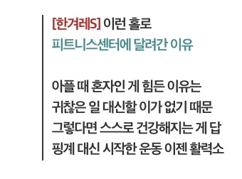 [여시뉴스데스크]돈을 내고 운동할 ‘의지’를 샀다 작성자여계레|작성시간21.12.26|조회수6,124 목록 댓글 16 글자크기 작게가 글자크기 크게가 출처 : https://www.hani.co.kr/arti/society/society_general/1024728.html돈을 내고 운동할 ‘의지’를 샀다[한겨레S] 이런 홀로피트니스센터에 달려간 이유아플 때 혼자인 게 힘든 이유는귀찮은 일 대신할 이가 없기 때문그렇다면 스스로 건강해지는 게 답핑계 대신 시작한 운동 이젠 활력소www.hani.co.kr 다음검색 현재 게시글 추가 기능 열기 북마크 공유하기 신고 센터로 신고 댓글 댓글 16 댓글쓰기 답글쓰기 댓글 리스트 작성자Landers | 작성시간 21.12.26 피티 존나 짱임 돈주고 의지사기평생하고싶어 작성자홀리패션 | 작성시간 21.12.26 나한테 피티비는 고정비야 ㅋㅋㅋㅋ웃긴건 피티받고 카드값은 더 줄더라 작성자삐빅더쿠입니다 | 작성시간 21.12.26 나도 1월부터 피티한다^^ 그래서 지금 맘껏 먹는중 후후 작성자고양이는귀엽다리와리 | 작성시간 21.12.26 나도 비슷해 돈으로 의지샀다😂 작성자비긴ㅇ1계인 | 작성시간 21.12.26 너무 공감 ㅠㅠㅠㅠ흑 댓글 전체보기