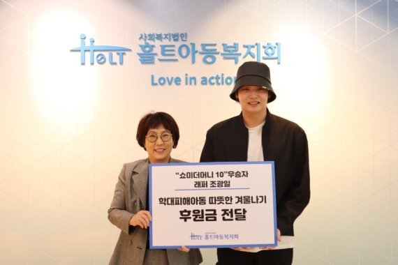 홀트아동복지회에 따르면 지난 3일 종영한 Mnet의 래퍼 서바이벌 프로그램 '쇼미더머니 10'에서 우승을 차지한 조광일은 학대 피해아동들을 위해 기부금을 전달했다.