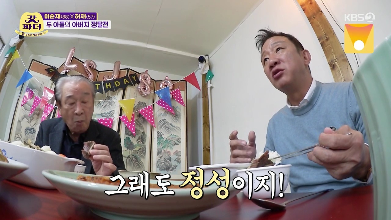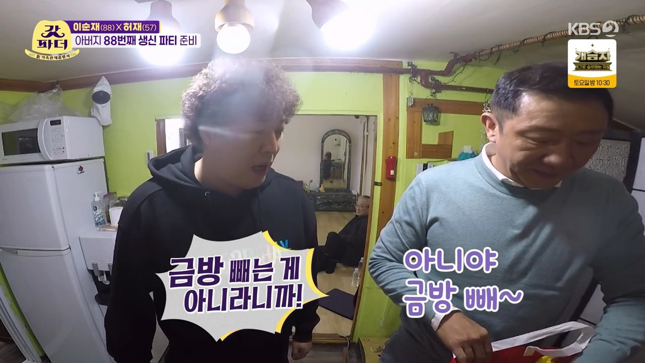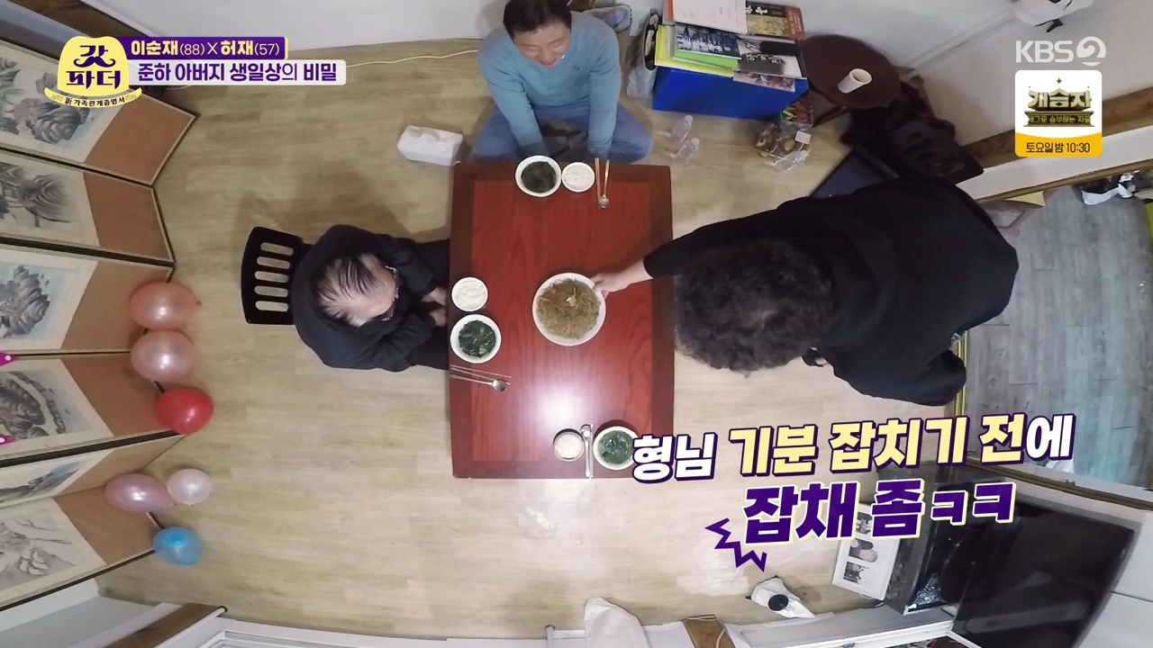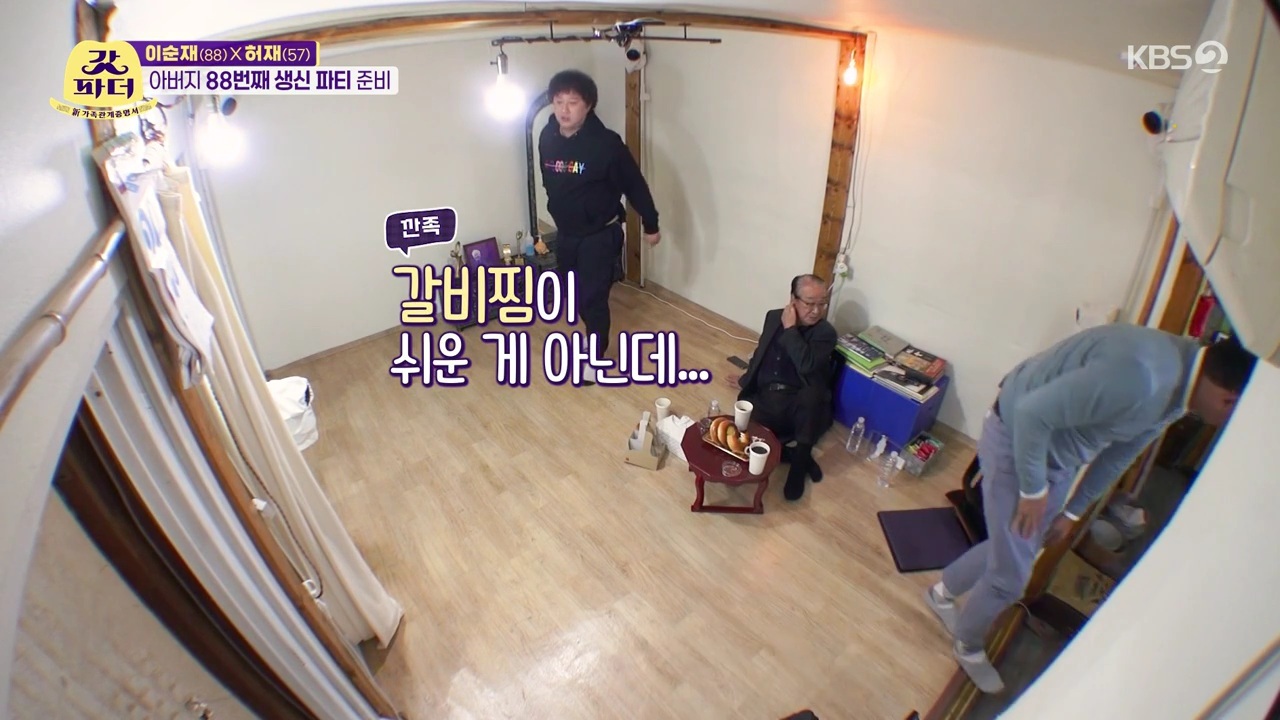 (예능컨셉)첫아들 정준하와 둘째아들 허재가 아버지 이순재의 생신파티를 준비함