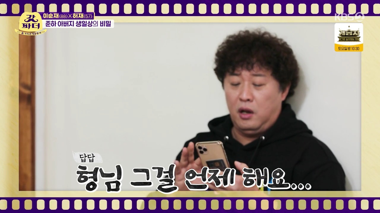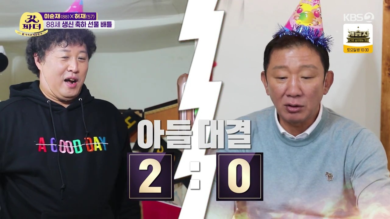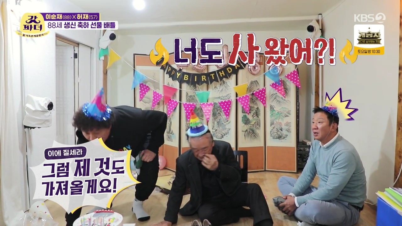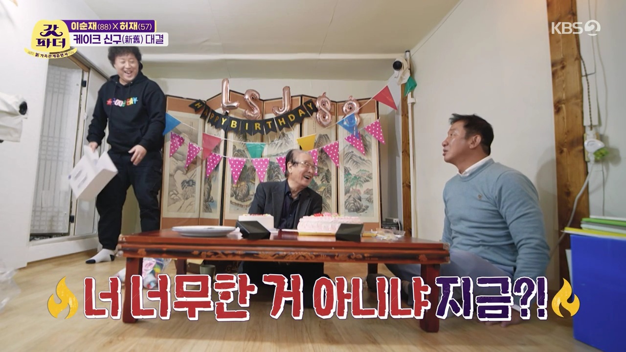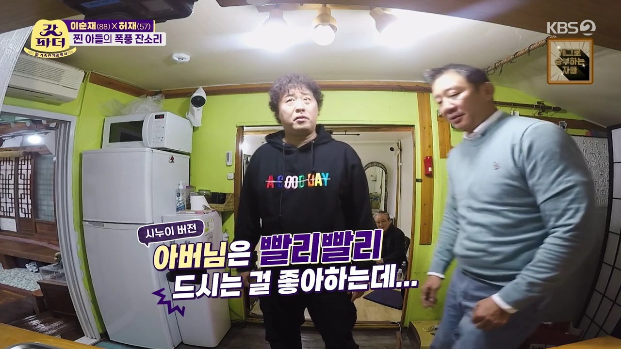 (예능컨셉)첫아들 정준하와 둘째아들 허재가 아버지 이순재의 생신파티를 준비함