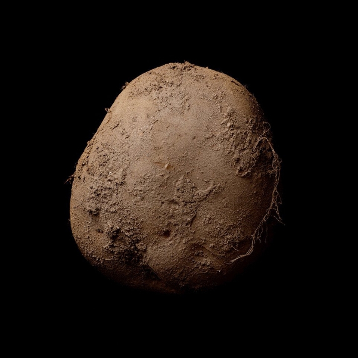 그저검은 배경에 껍질이 생생히 드러난 감자 사진일 뿐이다.