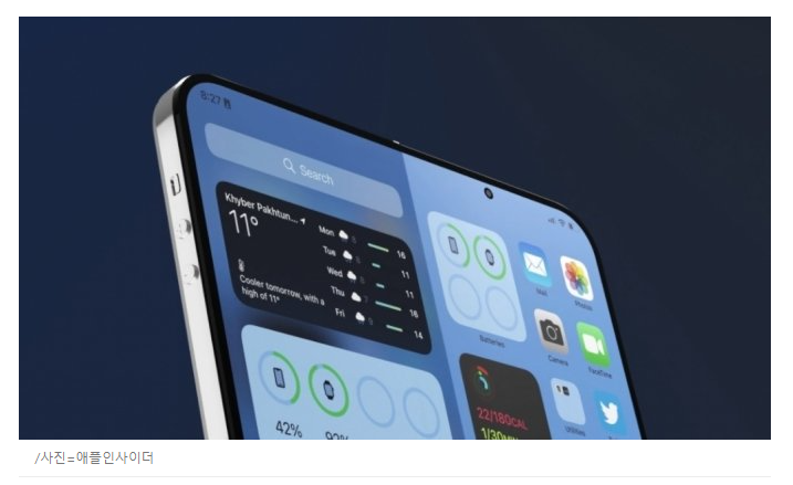 애플인사이더는 아이폰14 예상 이미지에 폴더블 관련 특허와 삼성 갤럭시폴드를 기반으로 이번 이미지를 제작했다. 전면 카메라를 위한 노치 디자인과 후면 '카툭튀'(카메라고 툭 튀어나온 모습)가 사라진 모습이 눈에 띈다.