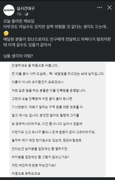 작성자살뺄거임ㄹㅇ로 작성시간 22.01.05 나는 걍 배달하는 가게에서 알바중인데 공동현관 비번 요청사항에 써있는 경우 존많...