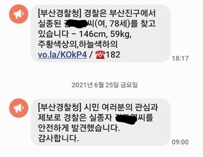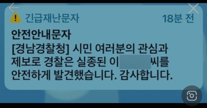 작성자캔디젤리럽 작성시간 22.01.06 우리 할아버지 안전문자 덕분에 찾았어 ㅠㅠ 다들 너무 감사했어 ㅠㅠㅠㅠㅠㅠㅠ아직도 눈물난다 …
