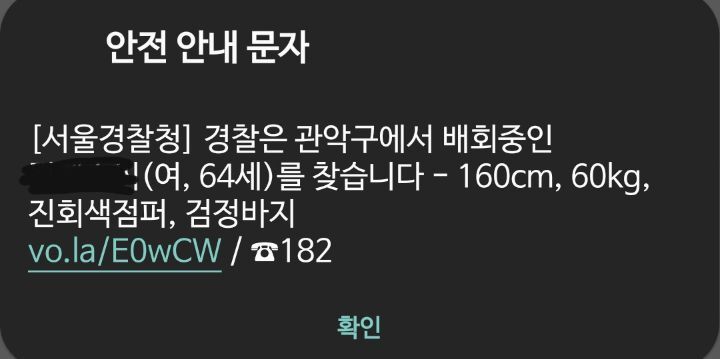 안전문자 안왔음 그냥 지나가는 노인1이였을껀데 덕분에 자세히 보게된것도있지..