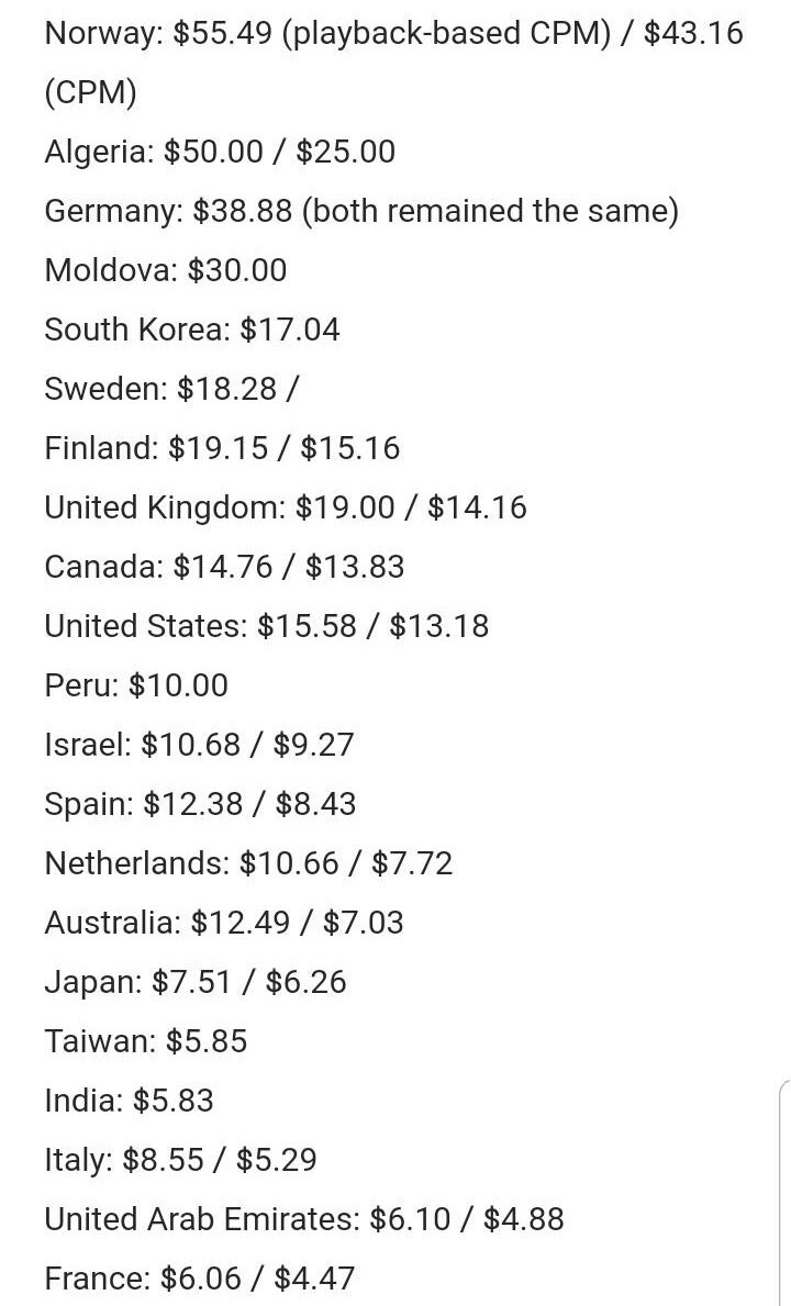 한국도 2019년 이후로 대기업에서 유튜브 광고에 투자가 높아지며 cpm이 엄청나게 상승했고 이젠 상위권 국가에 자리잡고 있긔