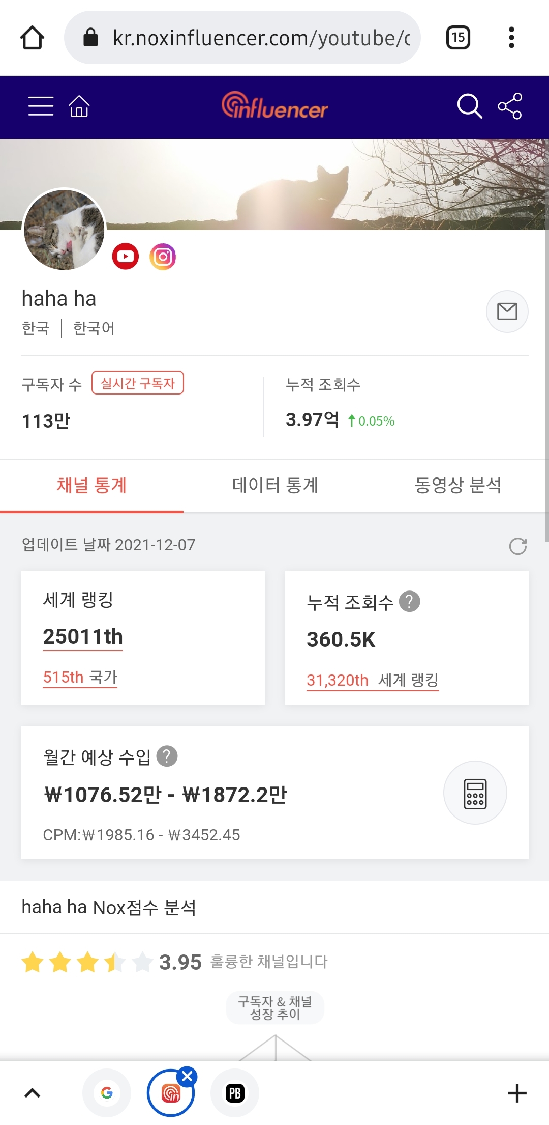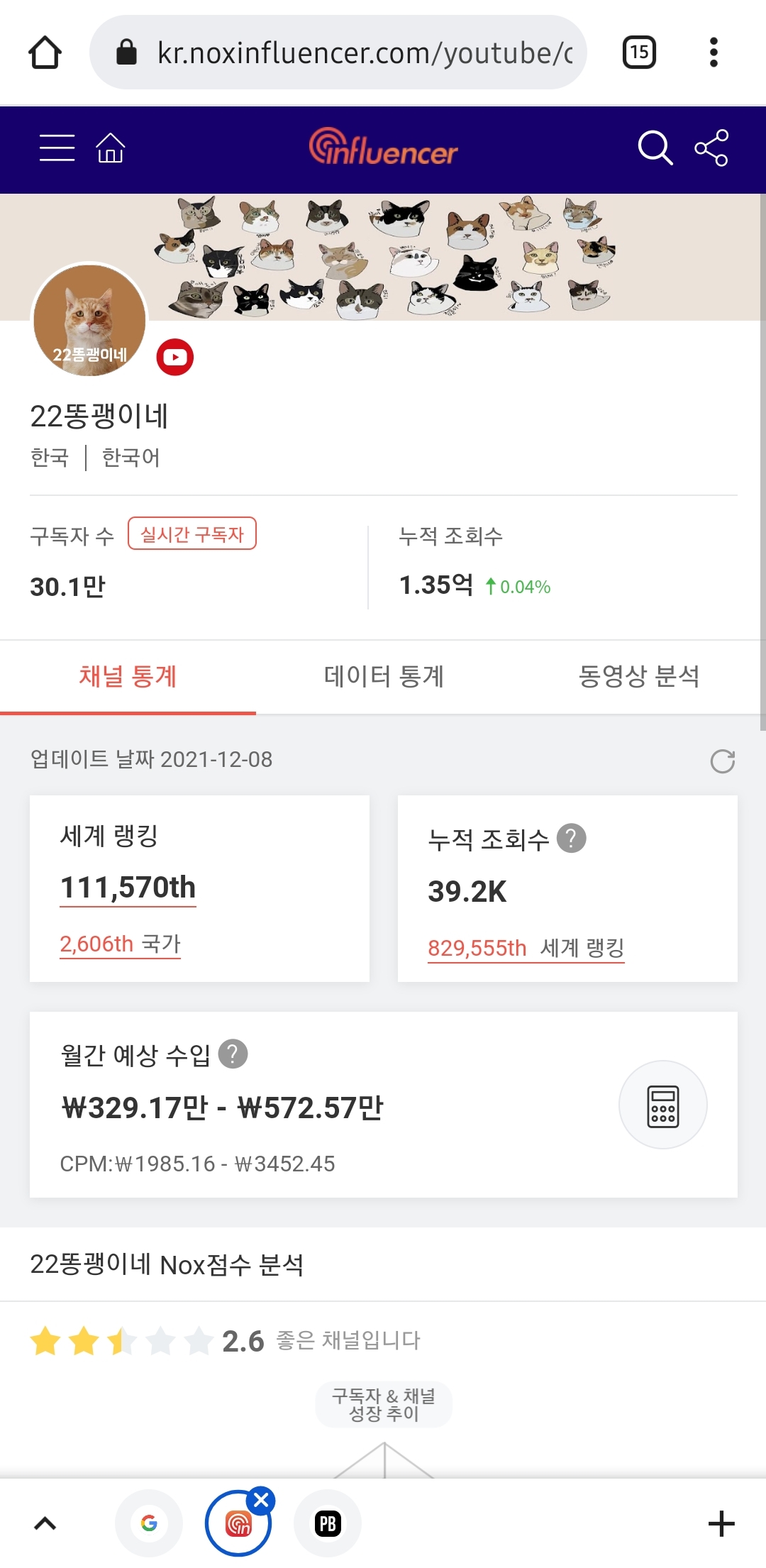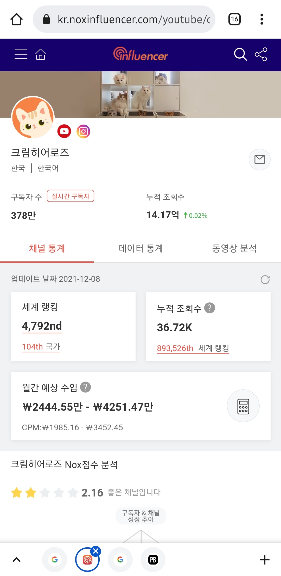 제 개인적인 기준으로는 21마리라는 길고양이를 키우고 봉사하시는데 비하여 수익이 적은편 같긔 ㅠ 더 많이 버셨으면 ㅠㅠ 진입장벽이 높은 유튜버라 생각했는데 막상 구독해보면 애들 하나하나 캐릭터 뚜렷하고 무엇보다 재밌더긔 소드님들께 추천드려요!