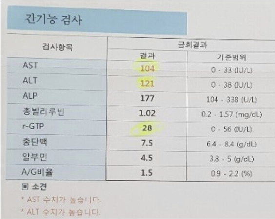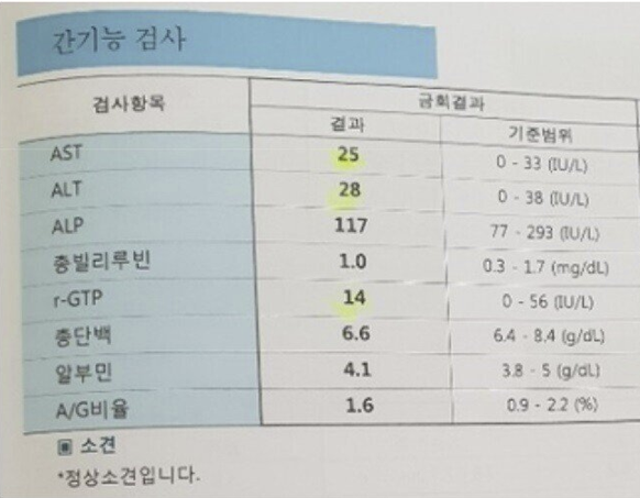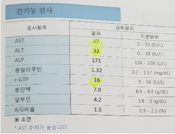 밀크씨슬 섭취 후 수치가 정상에 가까워졌습니다