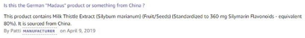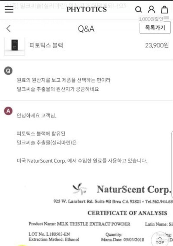 이제품은 밀크씨슬 원산지가 기재가 안되어있어서 따로 물어봤습니다