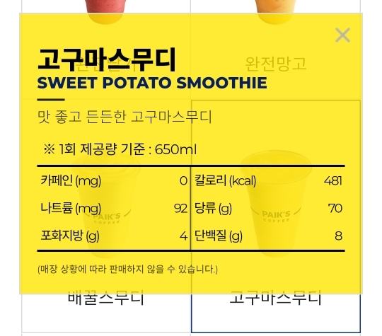 고구마스무디 당류 70g..이젠 그러려니...