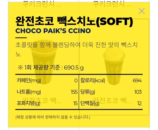 위에거랑 마찬가지로 당류가 103g인 완전초코 빽스치노 소프트