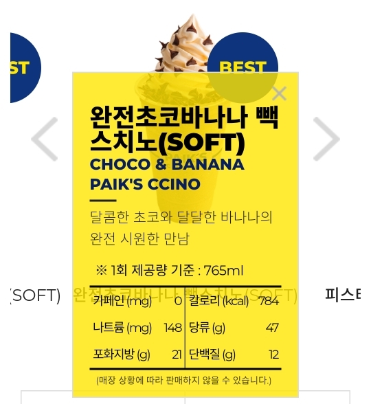완전초코바나나 빽스치노 소프트 당류 47g 뭐야 이거 생각보다는 낮다