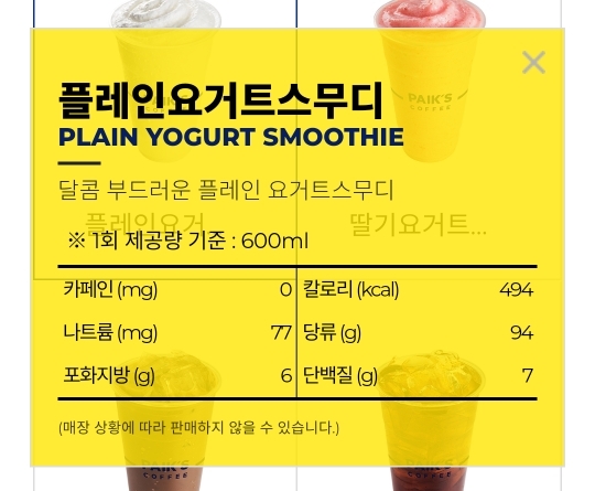 플레인요거트스무디 당류 94g 이거먹으면 이틀치 당 끌어다 먹는거