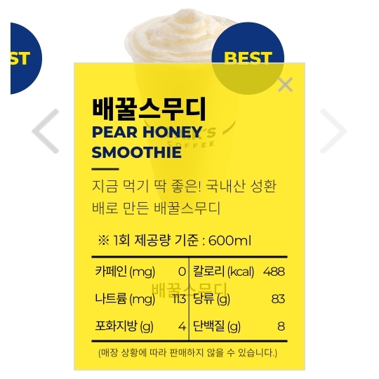 배꿀스무디 당류 83g..? 배에다 무슨짓을..