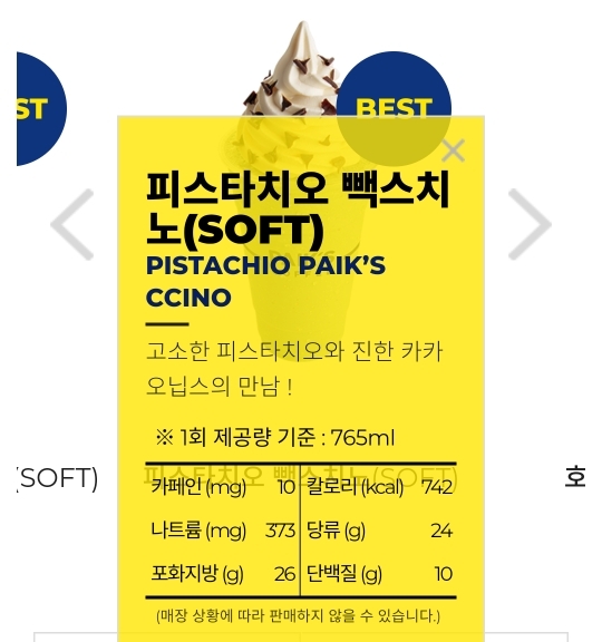 진짜 의외인 피스타치오 빽스치노 소프트 당류 24g.. 이거 제대로 검사한거 맞나?왜이리 낮지