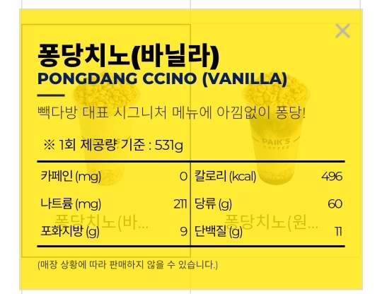 이거 기억하고 이제 빽다방 음료 당류 보러가자