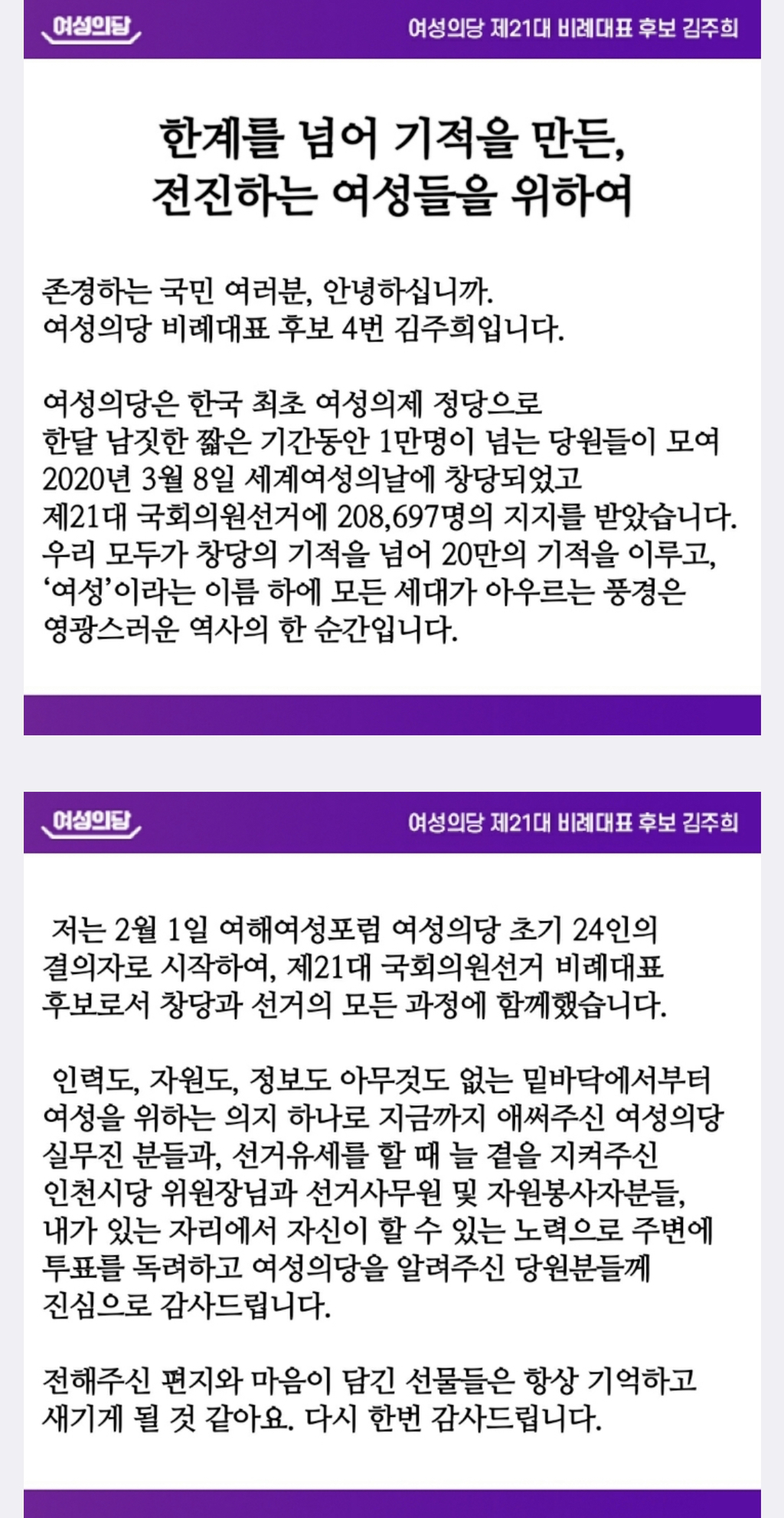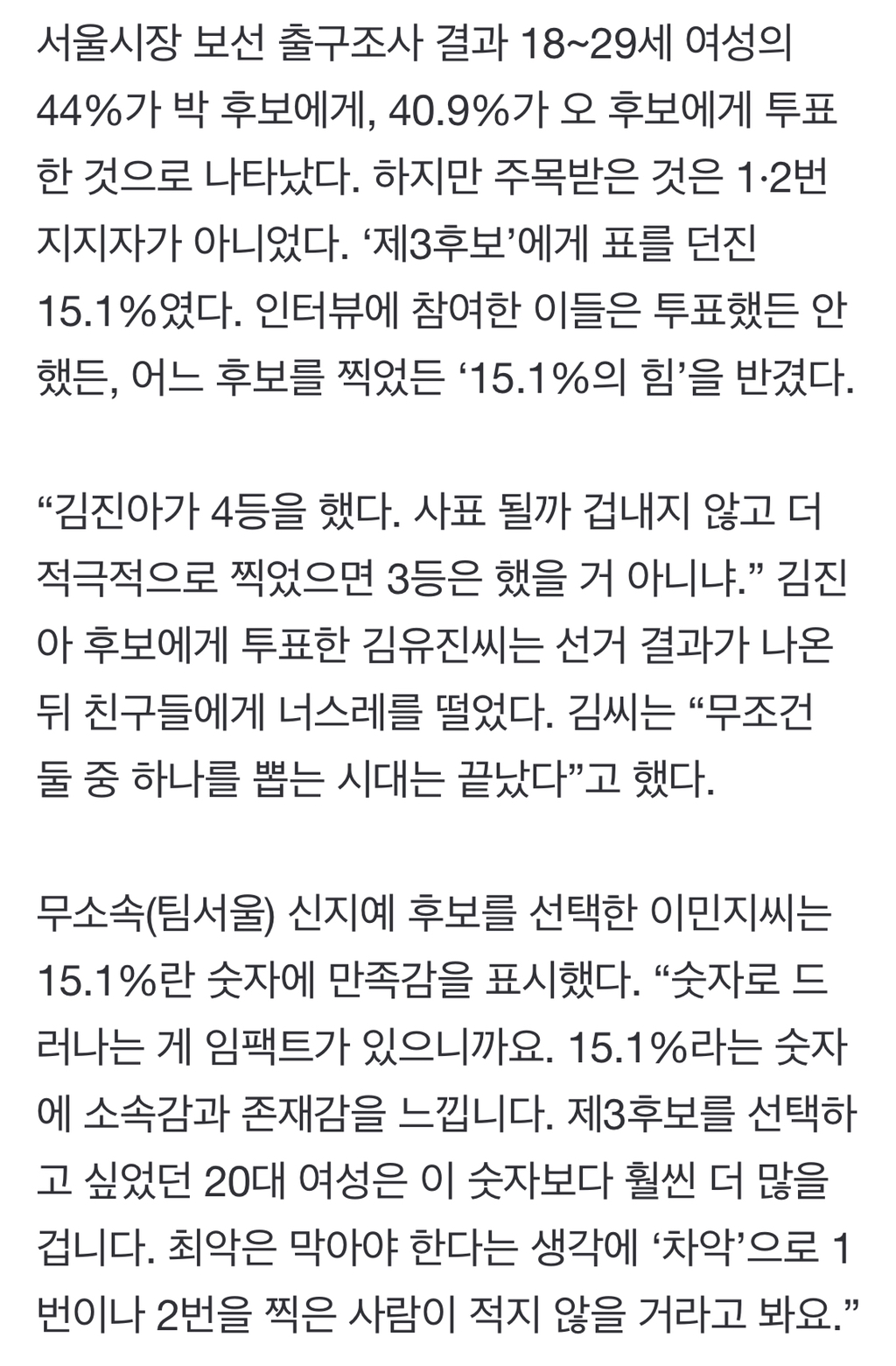 여성의당 김진아 후보를 지지하는 여성들은