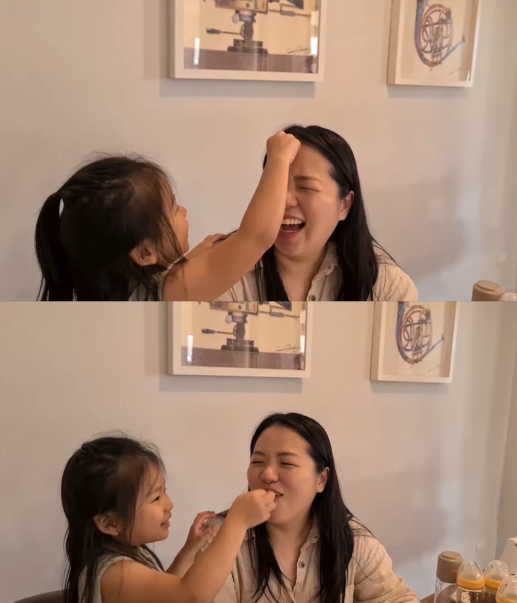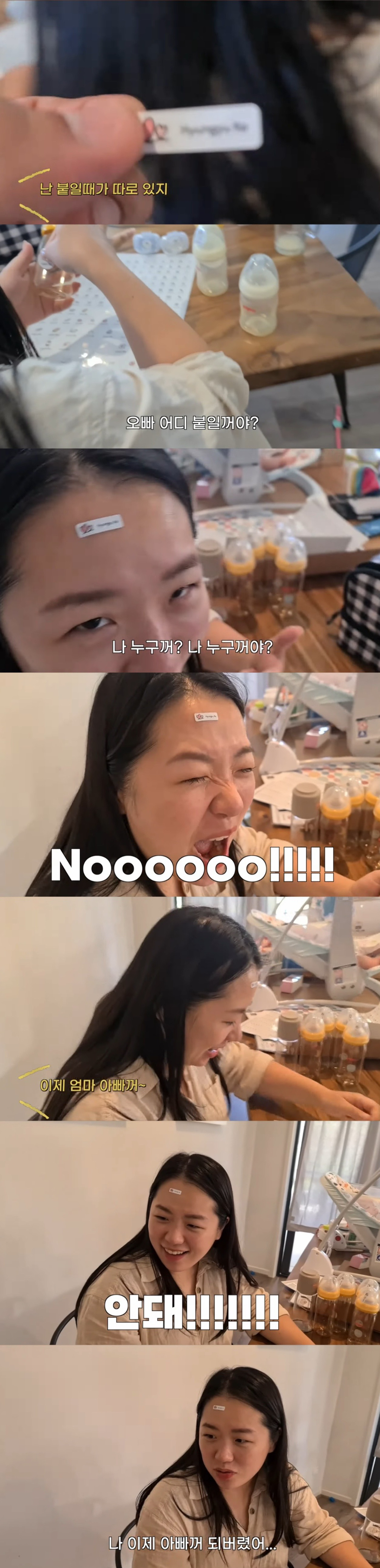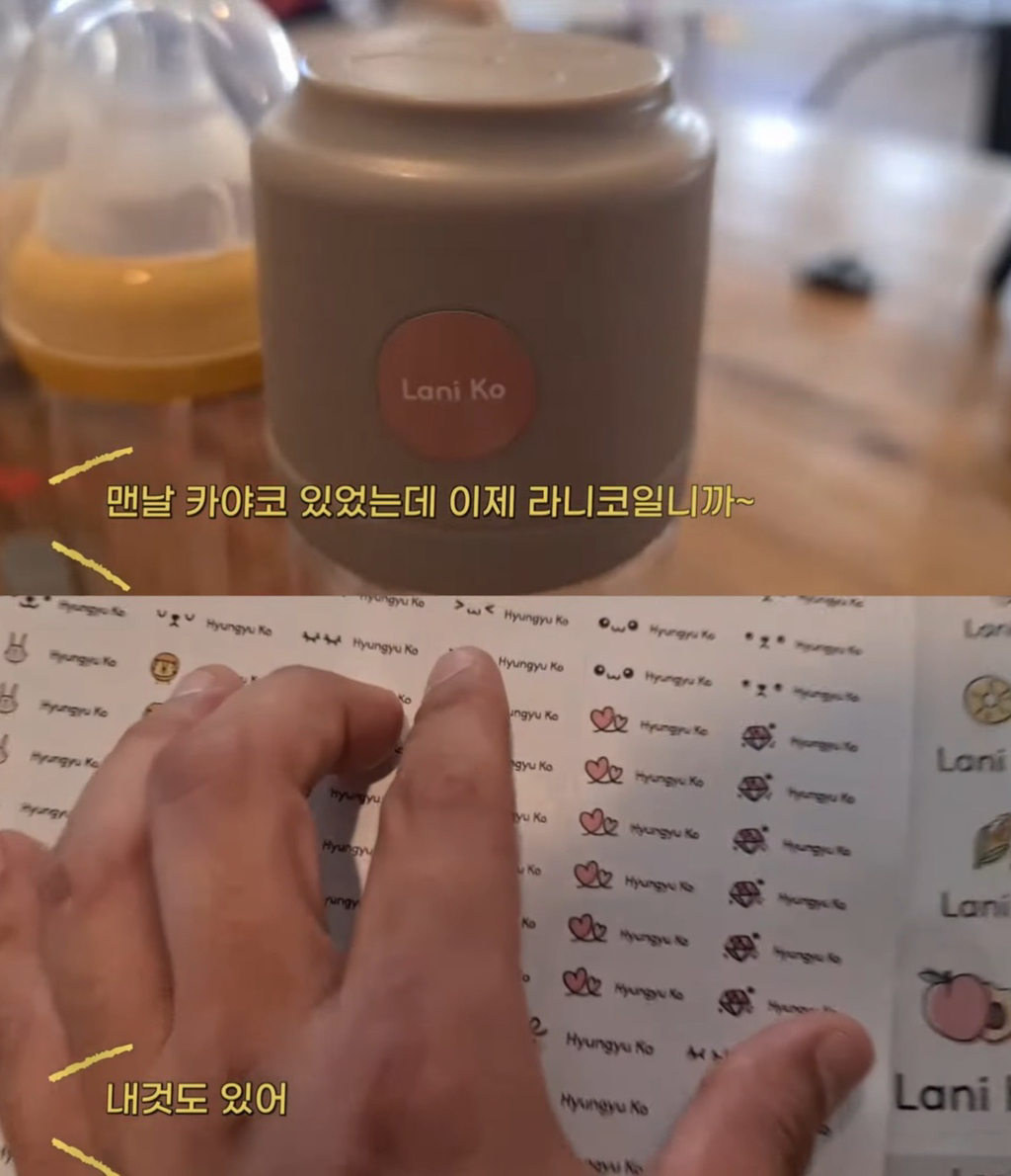 카야 아빠 현규는 자기 네임스티커를 헬렌(카야엄마) 이마에 붙이고는 "내꺼" 를 시전함