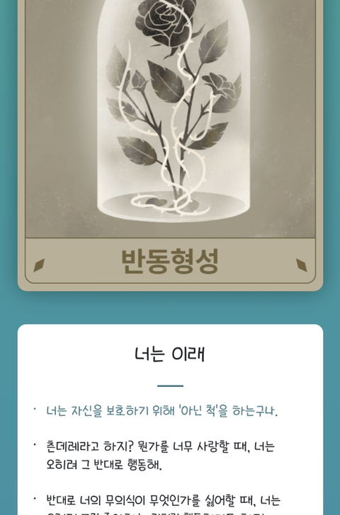 ‘우울한 내 모습’이 싫어서 안 우울한 척 하는 타입. 자기합리화 많이 하는 방어기제