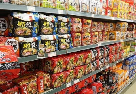 묶음포장된라면 뜯어서