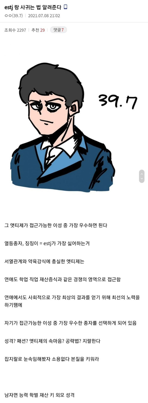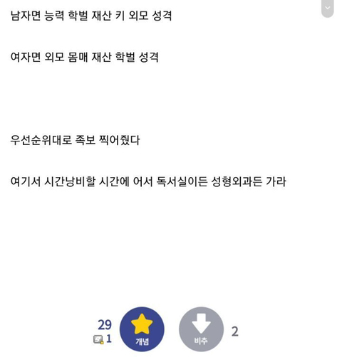 어차피 내실을 보기때문에 화려한 언변이나 매력발산, 밀당 이런걸론 안통함..ㄹㅇ쓰잘데기없음