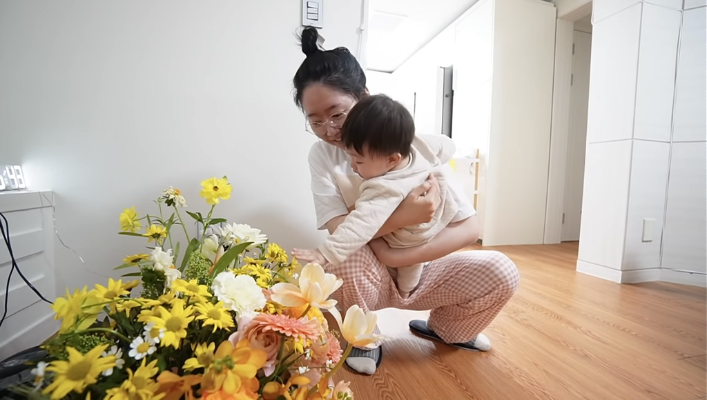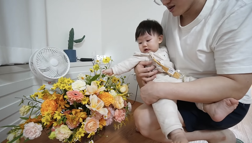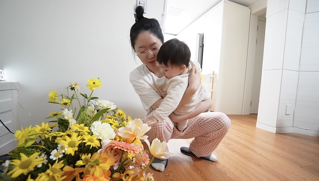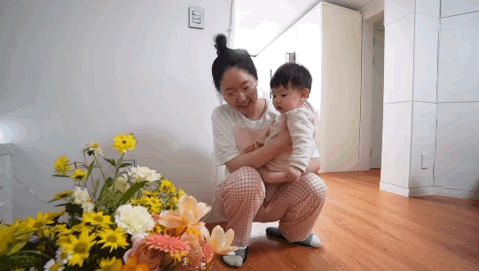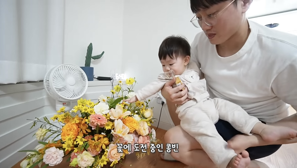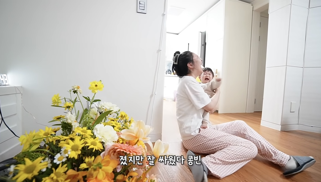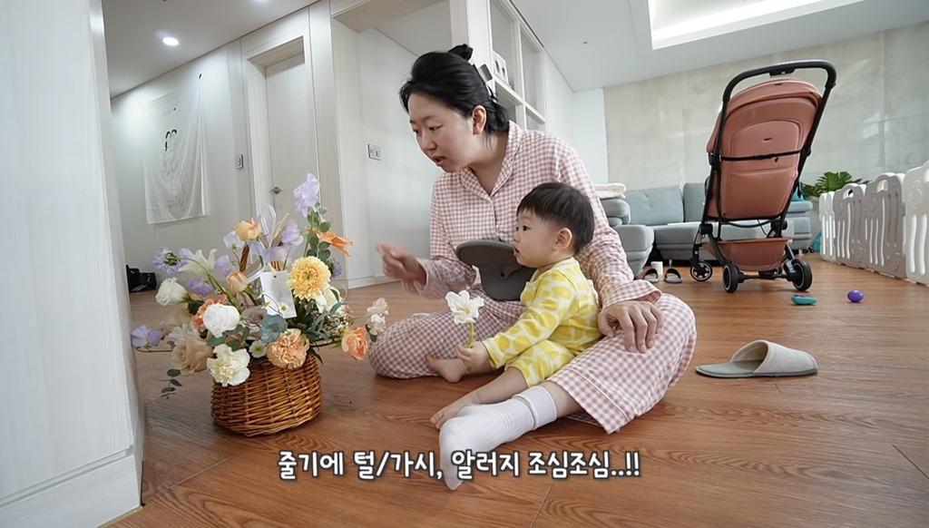 지금은 꽃도 만지고 발에 붙은 꽃잎도 뗄 수 있음