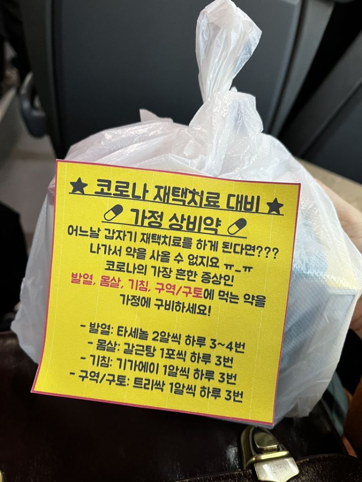근데 업무량이 많아서 바로는 못오시고 하루이틀 늦어지나봐...그럼 약국에 갈 수도없고ㅜ명절이라서 누구한테 부탁해서 사다 달라고 할수도 없어서..일단 확진되면 하루이틀 버틸동안 먹을 상비약 인듯 해 -