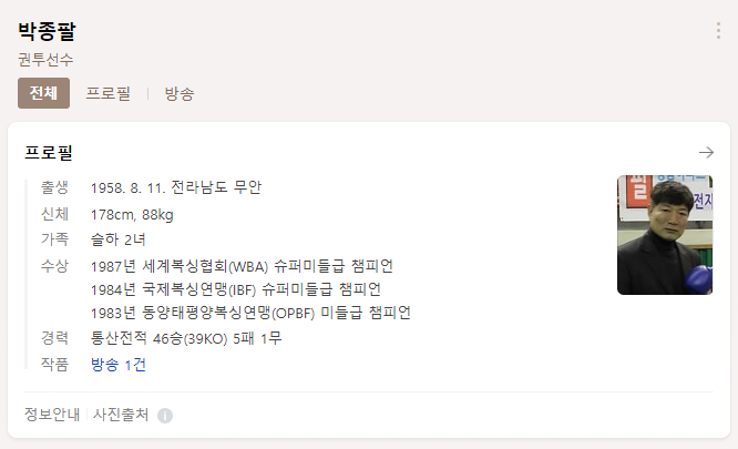 [스크랩] [흥미돋]할아버지의 운동신경.gif 작성자단델리온|작성시간22.01.29|조회수44,590 목록 댓글 30 글자크기 작게가 글자크기 크게가 복싱 전 세계 챔피언 박종팔 한국나이로 65세 ㄷㄷ 다음검색 스크랩 원문 : 이종격투기 현재 게시글 추가 기능 열기 북마크 공유하기 신고 센터로 신고 댓글 댓글 30 댓글쓰기 답글쓰기 댓글 리스트 작성자아버지는섹시드라이버 | 작성시간 22.01.29 미래를 보는 수준 작성자팡이팡이곰팡 | 작성시간 22.01.29 멋있다 나도 복싱 잘하고 싶어! 작성자인공잔디 | 작성시간 22.01.29 존멋 작성자좀비여시 | 작성시간 22.01.29 ㅋㅋㅋ 복싱 재밌어! 생각보다 안아프고 시간투자하는만큼 실력이 느는 운동임! 작성자#bradleywillsimpson | 작성시간 22.01.29 개쩐다 난 벌써 강냉이 나감 댓글 전체보기