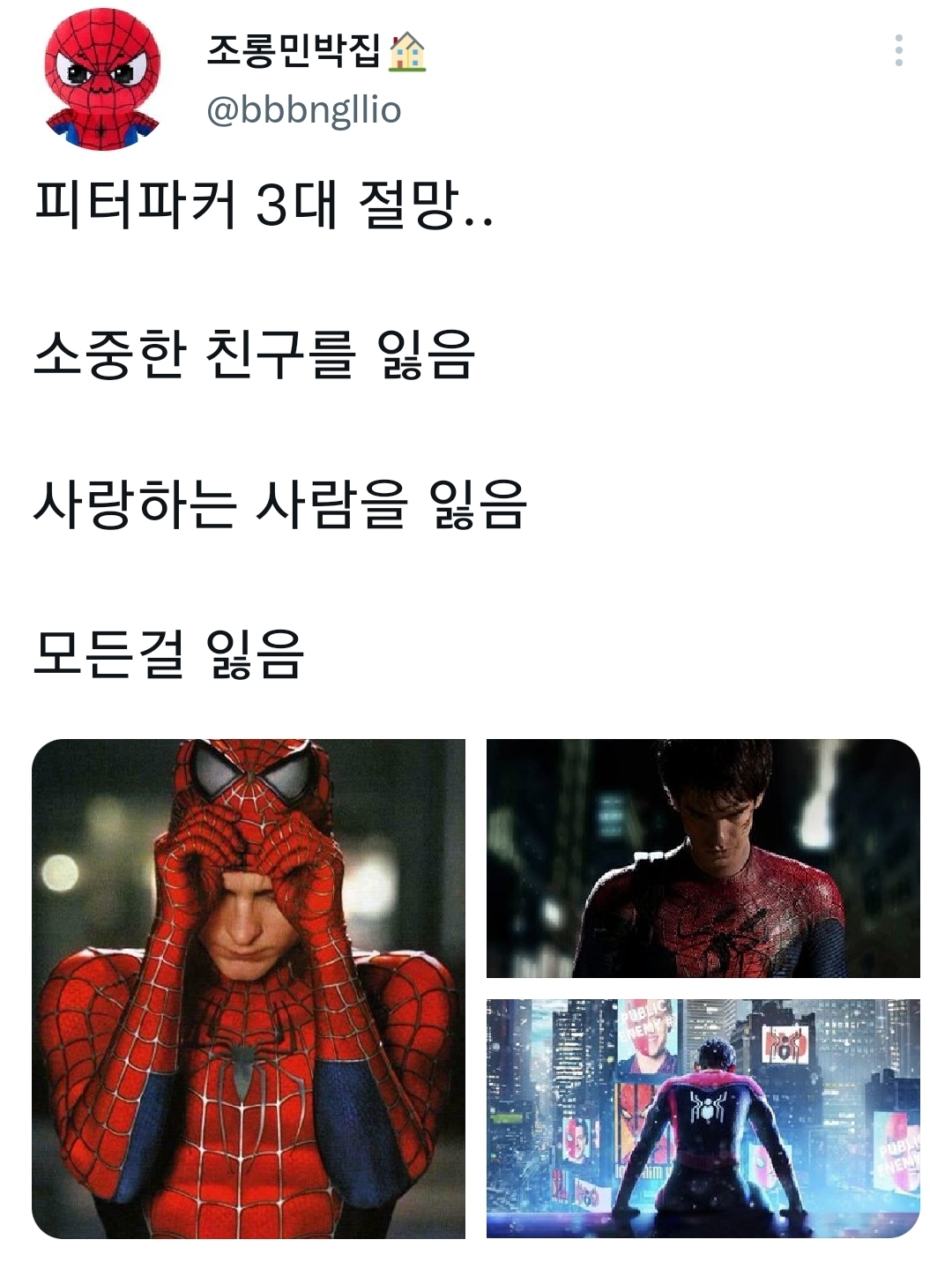 .............피터파커는 왜 행복할 수 없나요
