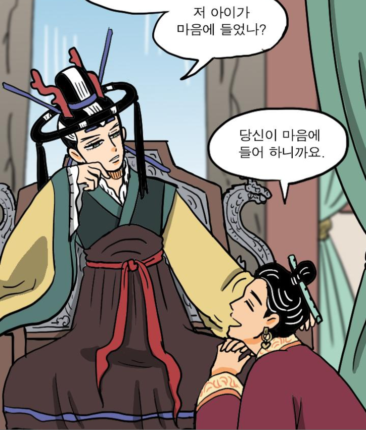 “역대 선황들께선 후궁을 최소 다섯 명, 평균 열다섯 명 두었습니다. 이제 제가 황제가 되었으니, 저도 최소 다섯명 이상은 후궁으로 두어야겠습니다. 재상 아들이요? 대상의 후계자요? 제가 좋다면 하렘으로 들여보내세요. 보고 마음에 드는 사람을 황후로 삼을 것입니다.”