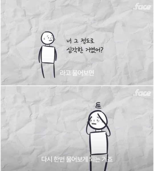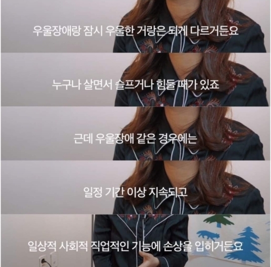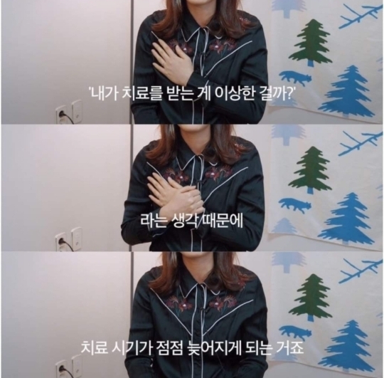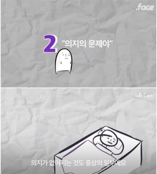 왜냐면 진짜로 병이면 우울감이 누구나 다 겪는 수준보다 더 심해서 어쩌면 남들 다 하는 일상 생활 영위하기도 힘들 가능성도 있고, 그냥 지 혼자 '아~ 남들도 다 그런가보다~ → 내가 병원까지 갈 필요 있나? → 역시 난 의지박약이야' 이럴까봐..